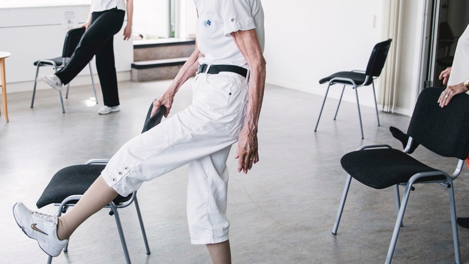 Vi tränar balans, stabilitet och styrka med stol som stöd. Alla kan vara med på sin nivå.